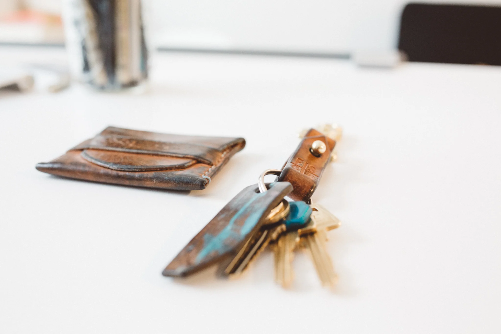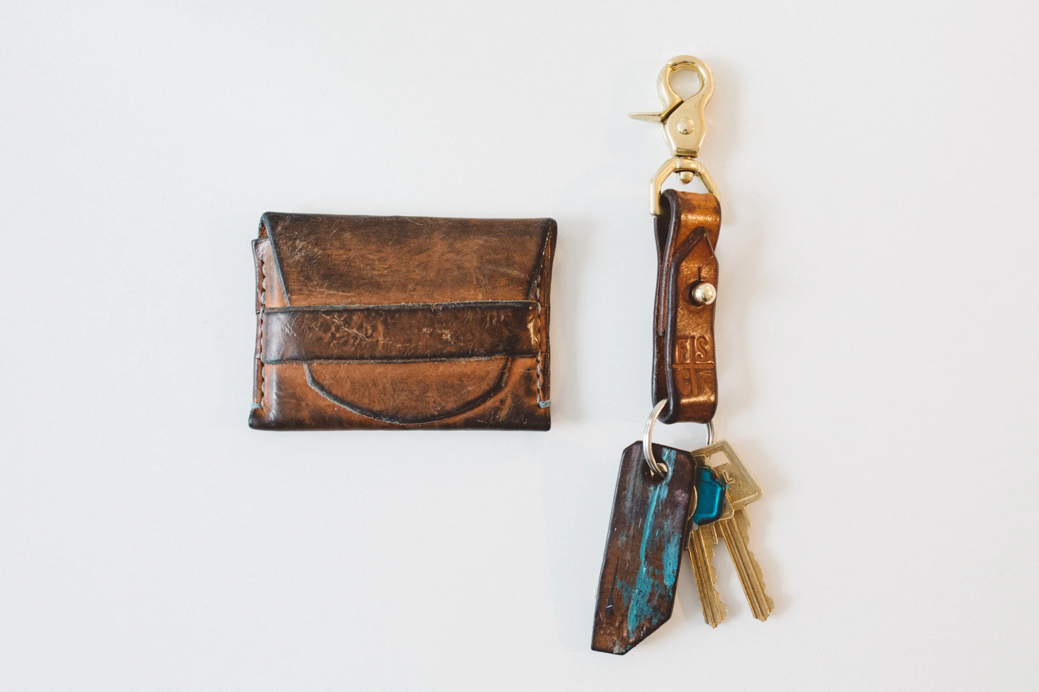 Just showing off my well worn wallet and key fob made by the rad dudes at Fontenelle Supply Co. I broke these bad boys in the same time as my pair of baldwins, which explains the dark indigo coloring.